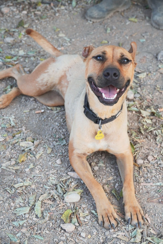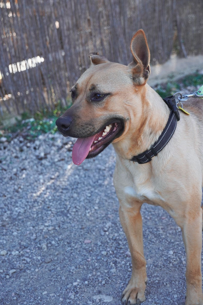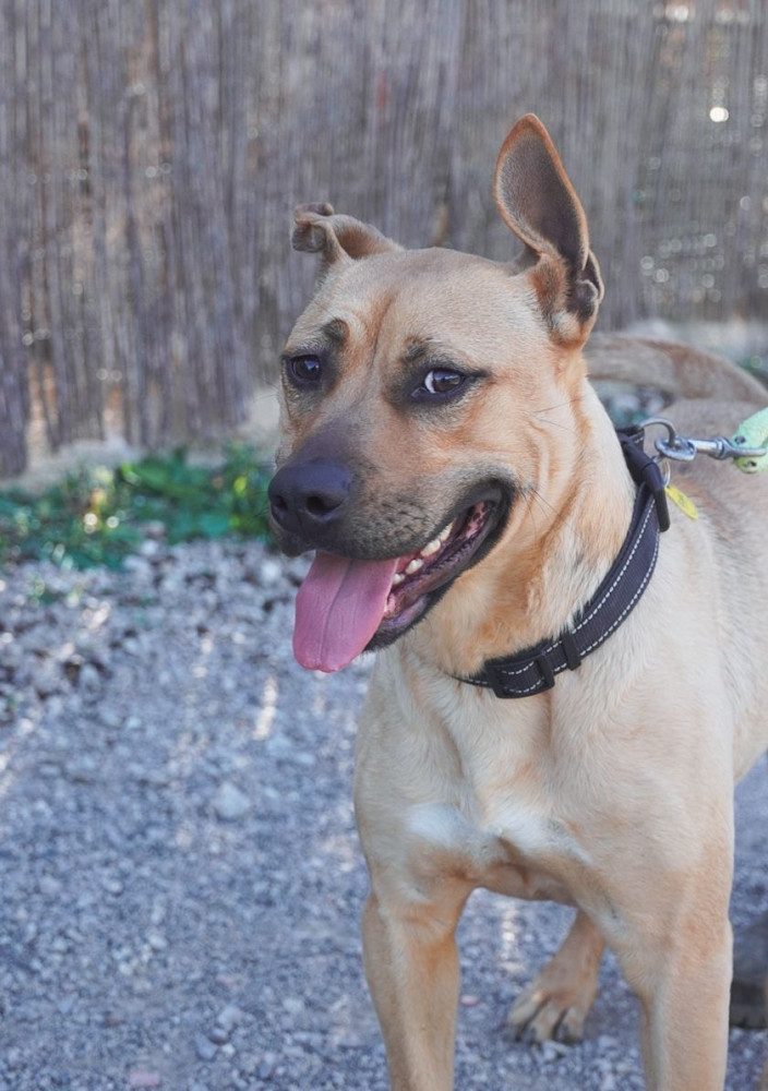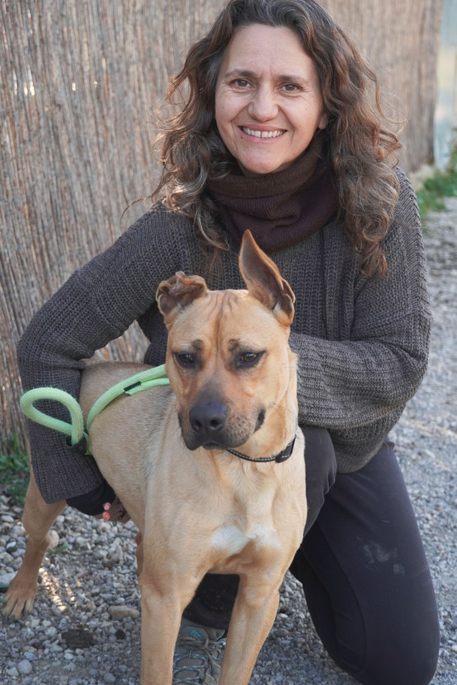 Perla és una gosseta que vivia amb un alcohòlic en un poble proper anomenat Mas de Barberans. Els serveis socials se la van treure amb uns 8-9 mesos i ja la van portar a la protectora. És una gossa 10, simpàtica i afectuosa. Es porta bé amb gossos mascles i femelles i amb gats també.