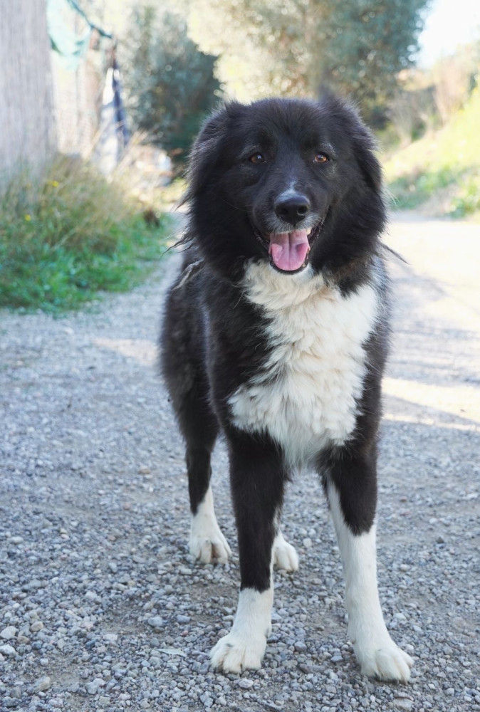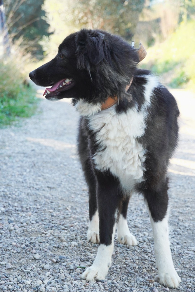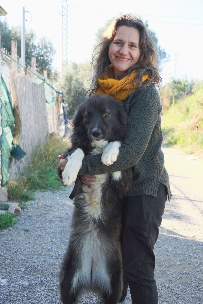 És una Border Collie mix, preciosa, és ideal, carinyosa, és porta super be en tots els membres de casa seva, però té un problema: fa pinya i proteix en excès als seus. És porta super be en tots els gossos .